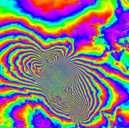 Dengan menggunakan teknologi InSAR, perubahan permukaan bumi dapat diketahui secara akurat di wilayah yang luas.